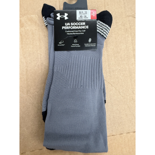 UA Soccer Performance Cushioned OTC Socks M 8.5-13/W 10-14 Grey